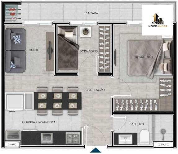 Apartamento com 2 dormitórios, living e cozinha integrados, churrasqueira na sacada e uma vaga de estacionamento, os apartamentos da linha New Place contam com a possibilidade de personalização de acabamentos e parcelas que cabem no seu bolso.