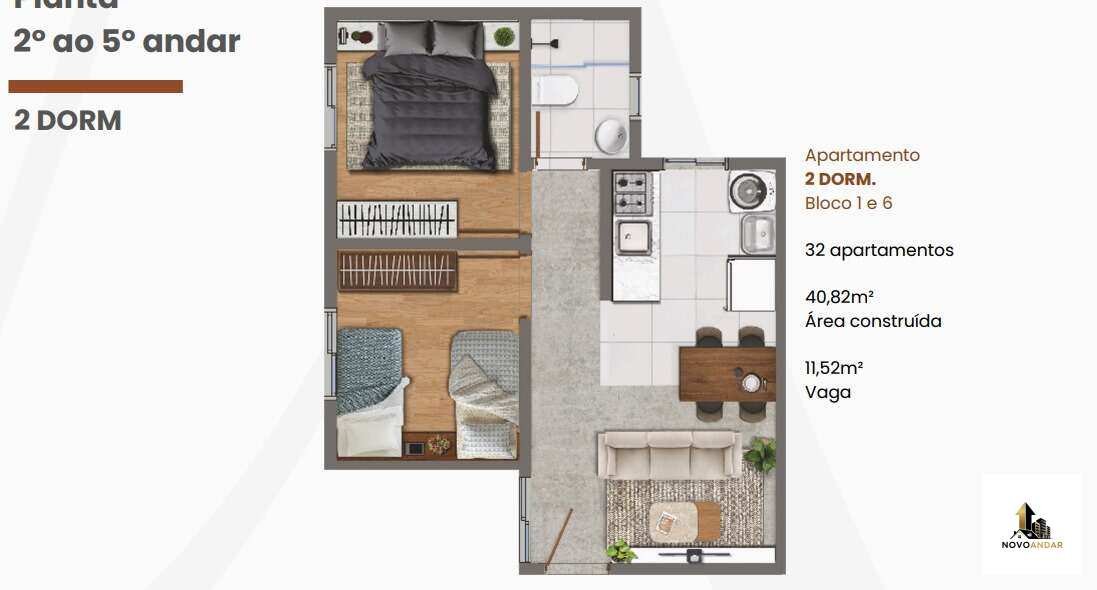 Renda FAMÍLIAR a partir de R$ 3.500,00 (cotista com dependente) já garante unidade de 2 dormitórios sem sacada