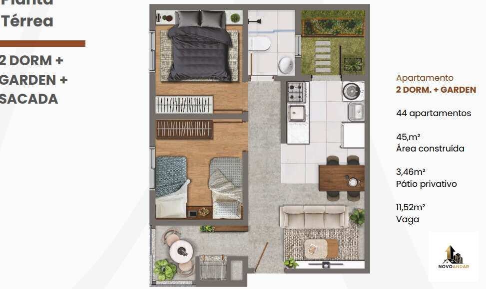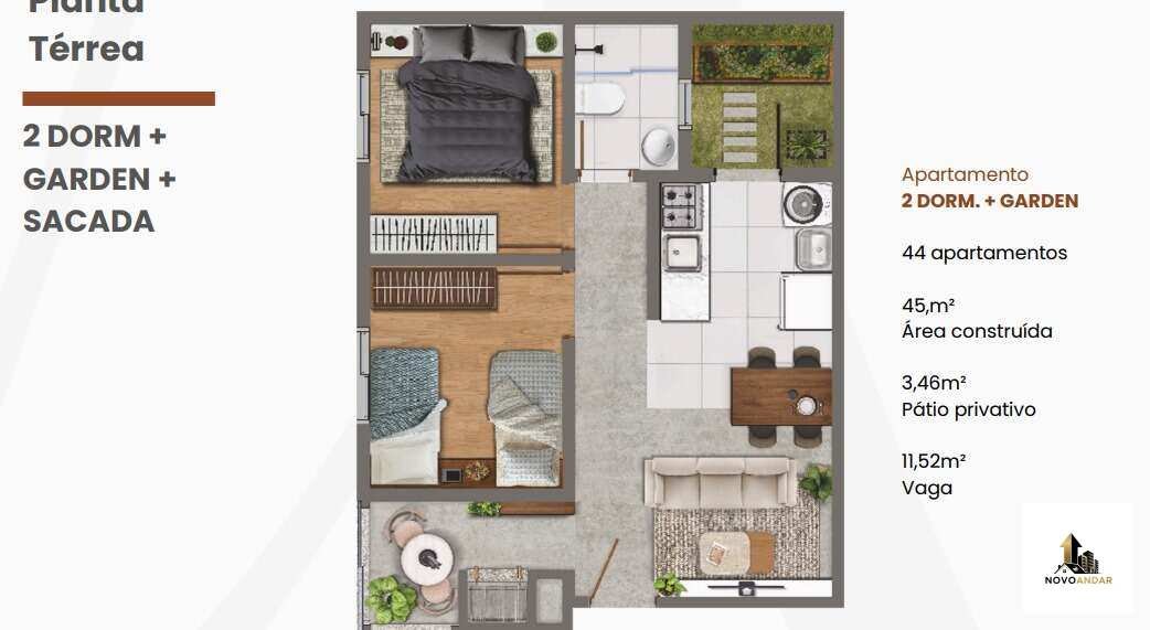 Apartamentos de 1 ou 2 dorm, de 40,8 m² a 49,4 m², equipados com sacada gourmet e janelas de vidro para você se divertir e fazer seu churrasco em todas as estações!
