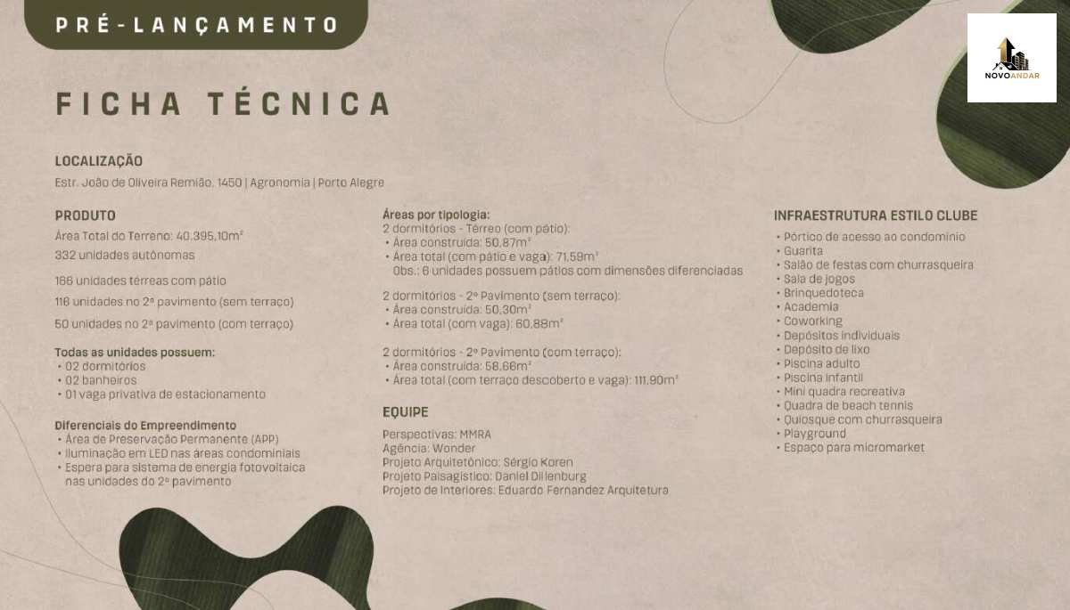 > SKY GARDEN - 2 banheiros - (Térreas com Pátio) Área construída 50,87m² + Vaga Carro = 71,59m² *Consultar os tamanhos pátios!