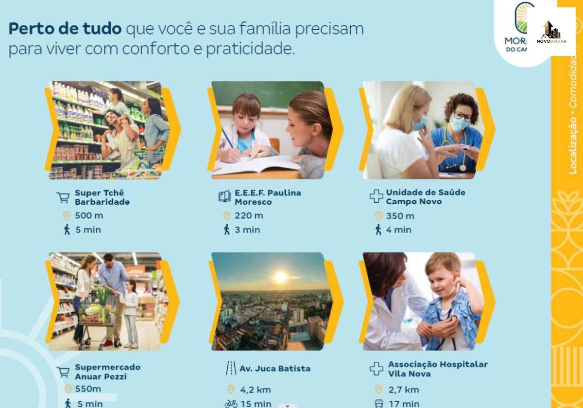 Bairro Campo Novo: Trata-se de uma região com boa infraestrutura — próxima a escolas, mercados e postos de saúde. Está estrategicamente localizada na Zona Sul, a apenas cerca de 3 minutos da Juca Batista. Há acesso fácil a shoppings, comércio e serviços