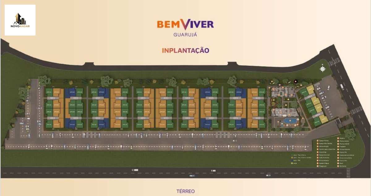 Número total de unidades/volume: são 260 apartamentos distribuídos em vários blocos, com 3 pavimentos cada, 4 unidades por pavimento, com exceção de alguns blocos cujos térreos têm unidades diferenciadas.
