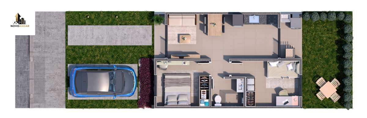 Pátio frontal e pátio nos fundos