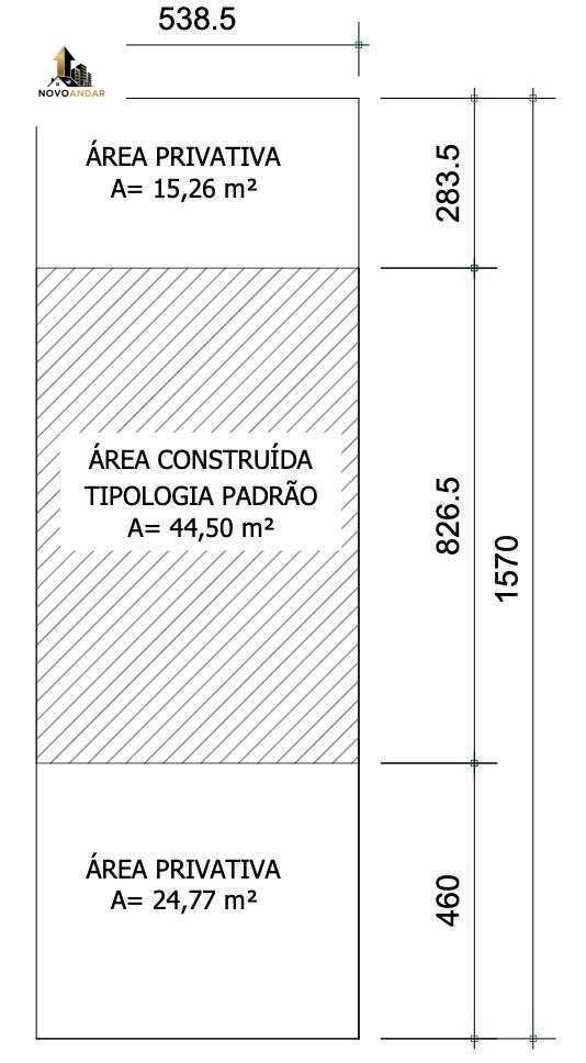 Pátio privativo de fundos: 15,26m² *unidade padrão